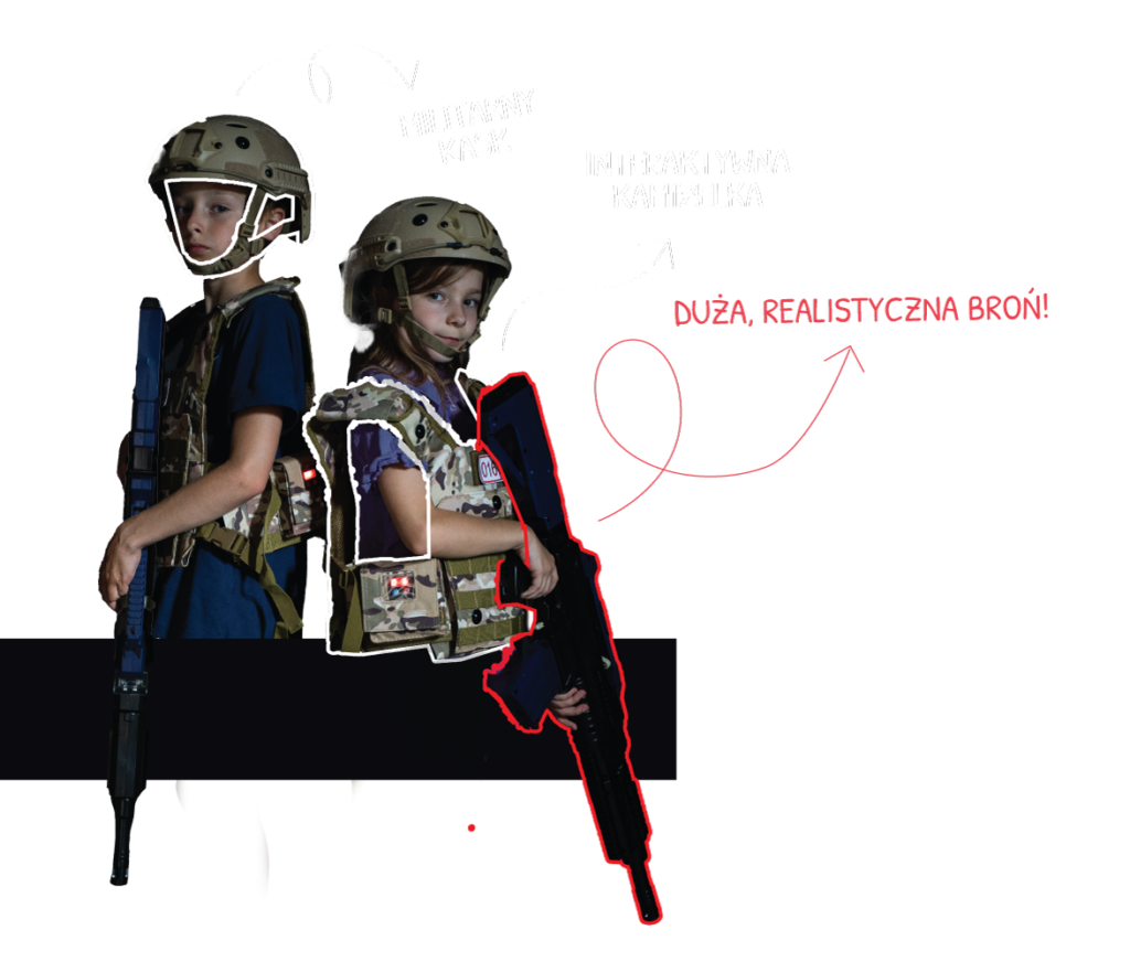 Posiadamy najwyższej klasy sprzęt z interaktywnym kaskiem i kamizelką, oraz realistyczną bronią!
